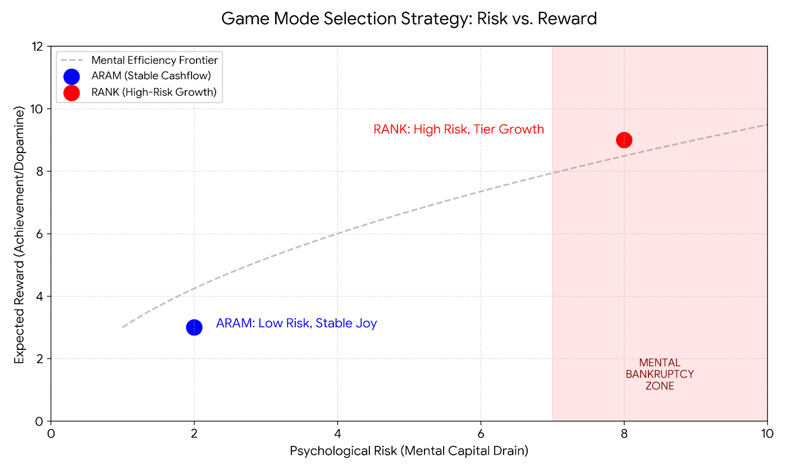 롤 유저들의 영원한 난제, "랭크 한 판 더 돌릴까, 아니면 그냥 칼바람이나 할까?" 이 고민은 단순히 '어떤 맵에서 놀지'의 문제가 아닙니다. 당신이 가진 한정된 '멘탈 자원(Mental Capital)'을 공격적인 성장주(랭크)에 몰빵할 것인지, 아니면 안전한 배당주(칼바람)로 분산 투자할 것인지 결정하는 자산 배분 결정입니다.