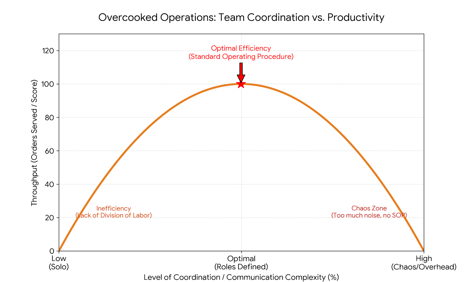 전문성 강화: 오버쿡드에서도 마찬가지입니다. "누가 이거 해!"가 아니라, 처음부터 [재료 손질 - 조리 - 서빙 및 설거지]로 역할을 고정해야 합니다. 동선이 겹치는 순간 '이동 시간'이라는 최악의 낭비가 발생합니다.