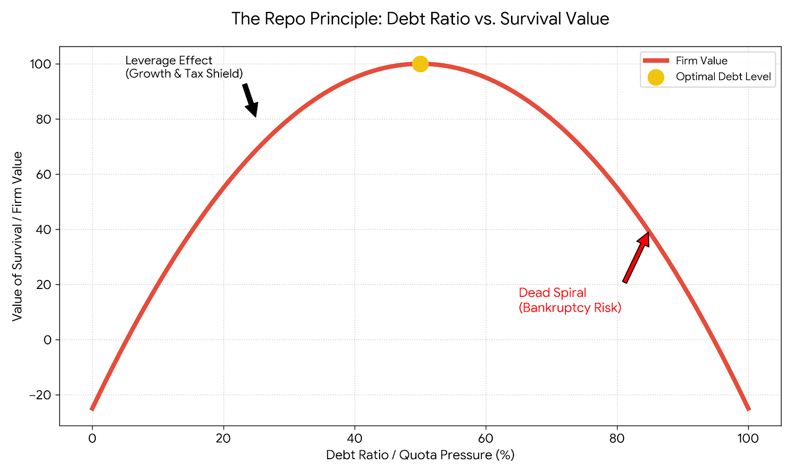 R.E.P.O에서 매일 갱신되는 할당량은 기업 재무로 치면 WACC(가중평균자본비용)와 같습니다. 기업이 돈을 빌려왔다면, 최소한 그 이자(Cost of Debt)보다는 더 많이 벌어야 파산을 면하죠.